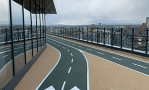 Apartment Development upgraded its rooftop with a functional, aesthetic running track to enhance
